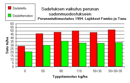 Satotappio onkin kuivina kesinä mittava. Tämän osoittavat muun muassa Perunantutkimuslaitoksen vuoden 1994 kokeet, joissa 110 millin sadetus viitenä kertana-annoksena lisäsi hehtaarisatoa jopa 17 tonnia.