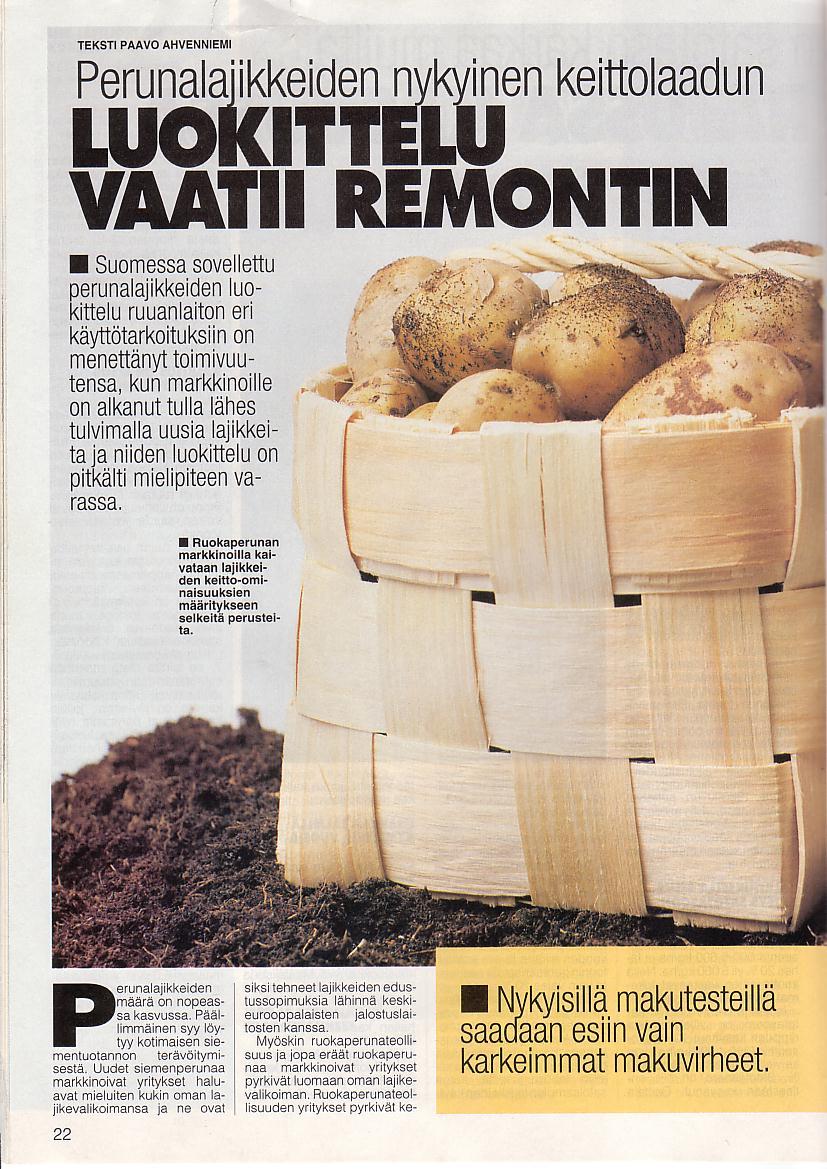 ei nykyisistä keittokokeista saa riittävää tietoa. Perunan