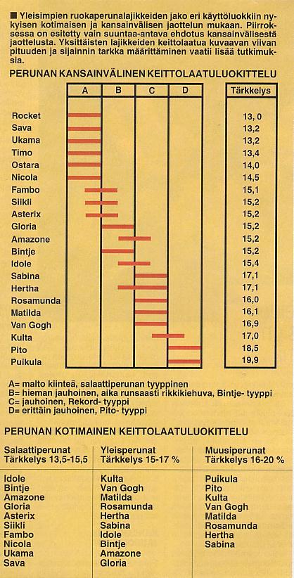 lajikkeisiin, yleisperunoihin ja kiinteämaltoisiin