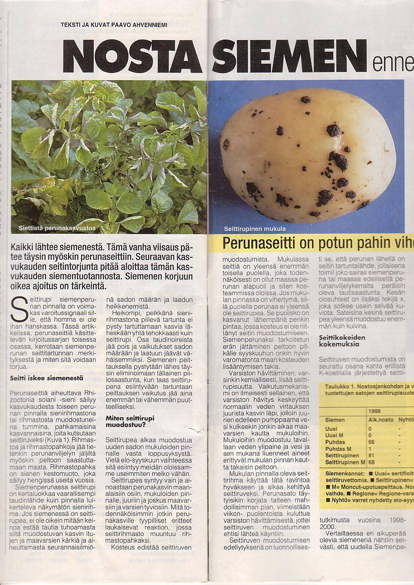Perunaseitti on potun pahin vihollinen? OSA 2. Nosta siemen ennen kuin seittirupi iskee. Ahvenniemi, P. Maatilan Pirkka
