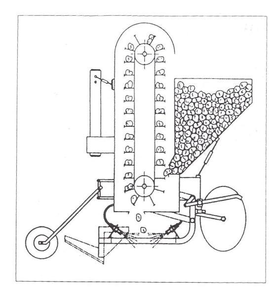 putoavat istutuskoneesta penkkiin. Mahdollisimman alas asetetut