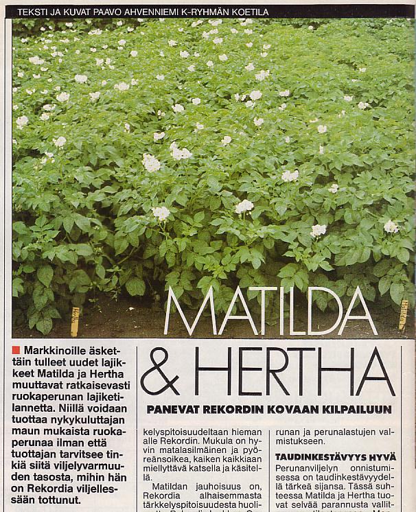 lajikkeiden puute. Matilda ja Hertha ovat tässä suhteessa merkittävä
