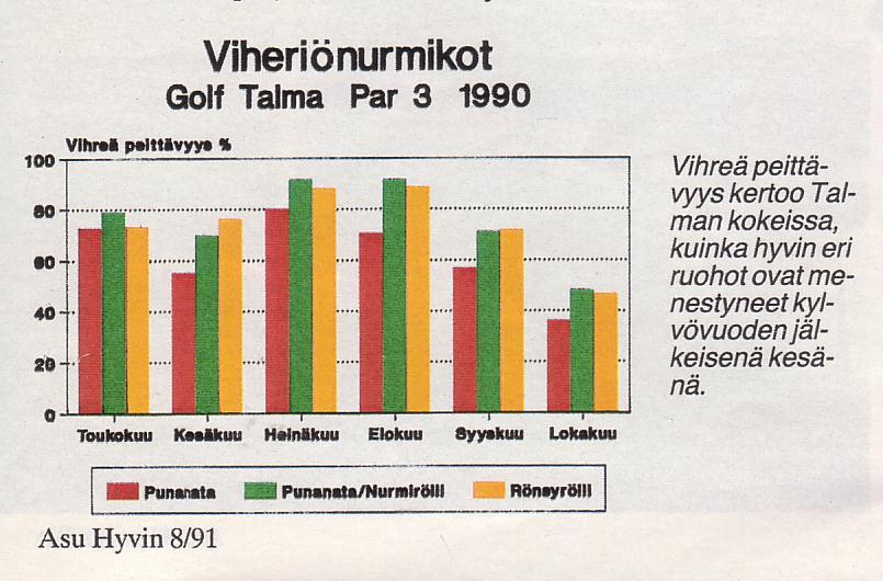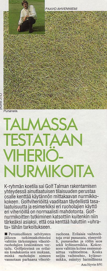 Talmassa testataan viheriönurmikoitaAhvenniemi, P. Asu Hyvin 1991(8):38-39. K-ryhmän