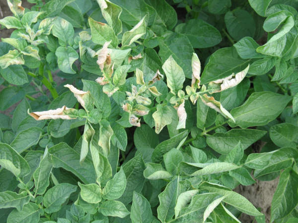 Kuva 4. Tässä latvoja nipistelleen hallan jälkiä perunan ylimmissä lehdissä.