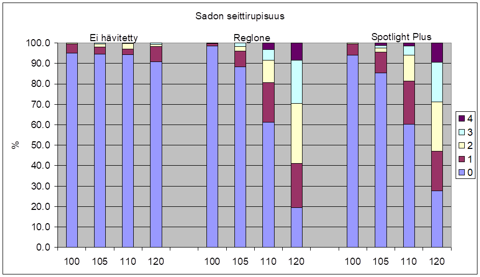 Kuva 8. Perunansiemenen seittirupisuuden vaikutus sadon