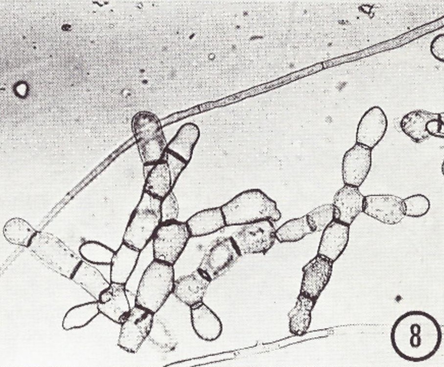| Kuva 7. Mukuloiden kasvuhalkeamia perunaseitin tartuttamassa kasvvissa |
